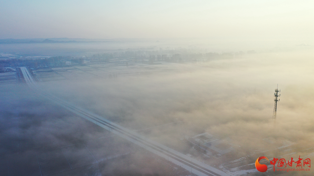 2月8日清晨,甘肅張掖市高臺(tái)縣黑河國(guó)家城市濕地公園上空霧浪翻滾,虛無縹緲,恍如天宮仙境,呈現(xiàn)出海市蜃樓般的云海奇觀,在陽光的照射下,格外美麗。由于多年來黑河生態(tài)治理,冬天封凍,加之近日大范圍的降雪低溫天氣,黑河的水面上經(jīng)常霧氣蒸騰,兩岸的樹木玉樹瓊花,形成霧凇景觀,如同童話世界里的仙境一般圣潔,令人心曠神怡。