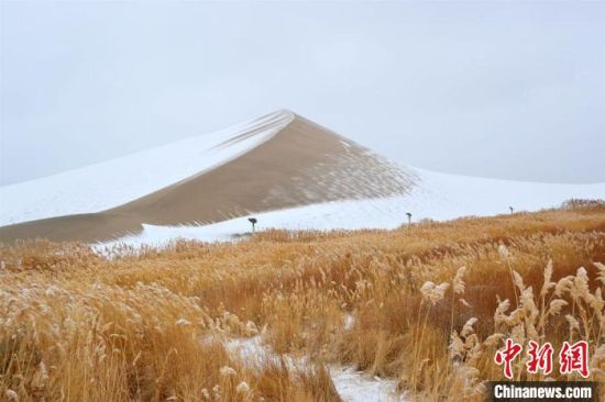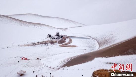 2月17日,甘肅敦煌迎來(lái)降雪天氣,大漠山川被皚皚白雪覆蓋,像一幅幅清秀淡雅的水墨山水畫(huà)。敦煌著名風(fēng)景區(qū)——鳴沙山月牙泉景區(qū)吸引游客前來(lái)觀賞難得一見(jiàn)的大漠雪景。這次降雪的特點(diǎn)是降雪量大,但氣溫并不是很低,游人盡情體驗(yàn)“沙雪交融”的絲路盛景。(王斌銀 張曉亮)
