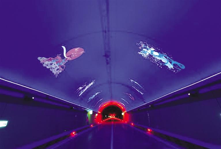 景觀照明系統(tǒng)主體效果充分融合甘肅文化特色,采用“飛天壁畫”“沙漠駝隊(duì)”等元素,利用洗墻燈襯托底色,投影燈展現(xiàn)景觀效果,實(shí)現(xiàn)為司乘人員打造人在畫中游的視覺(jué)感官,有效解決隧道內(nèi)長(zhǎng)時(shí)間駕駛的視覺(jué)疲勞和情緒波動(dòng),提升司乘人員駕駛舒適度。