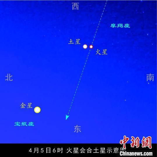 火星土星近距離相會,何時觀測最佳?各地最佳觀測時間是日出前70分鐘,觀察方位在東方偏南的低空。屆時,金星是啟明星,十分明亮,視亮度達(dá)到負(fù)4.4星等。在金星的西南面(右上方),可找到土星和火星。4月5日,廣州日出時間是6時16分,即廣州在5時06分前后觀測最佳。如果借助雙筒望遠(yuǎn)鏡觀察,效果更好。(郭軍 李建基)