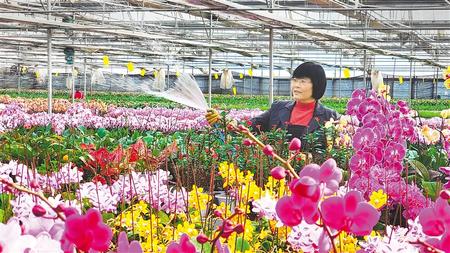 臨洮縣三易花卉種植基地的技術(shù)人員正在給蝴蝶蘭澆水。新甘肅·甘肅日?qǐng)?bào)通訊員 邊國鵬