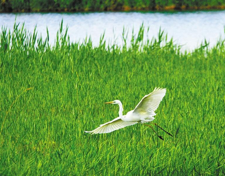 初夏張掖濕地:蘆葦青青 白鷺蹁躚