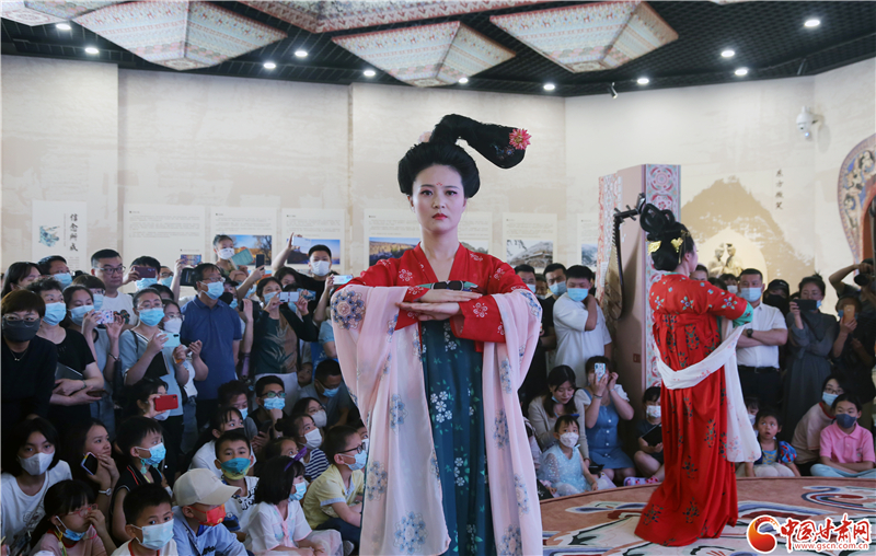 中國甘肅網(wǎng)6月11日訊(本網(wǎng)記者 程健 宋芳科)6月11日上午,值文化和自然遺產(chǎn)日到來之際,敦煌文化研究院在蘭州分院敦煌藝術(shù)館舉辦了“時代共進(jìn)、人民共享”主題展,通過虛實融合敦煌石窟體驗、敦煌服飾展演、文創(chuàng)產(chǎn)品展示等,向廣大市民群眾全方位呈現(xiàn)了深厚的敦煌文化與莫高窟文化遺產(chǎn)。當(dāng)天的活動,中國甘肅網(wǎng)全程進(jìn)行了網(wǎng)絡(luò)直播。