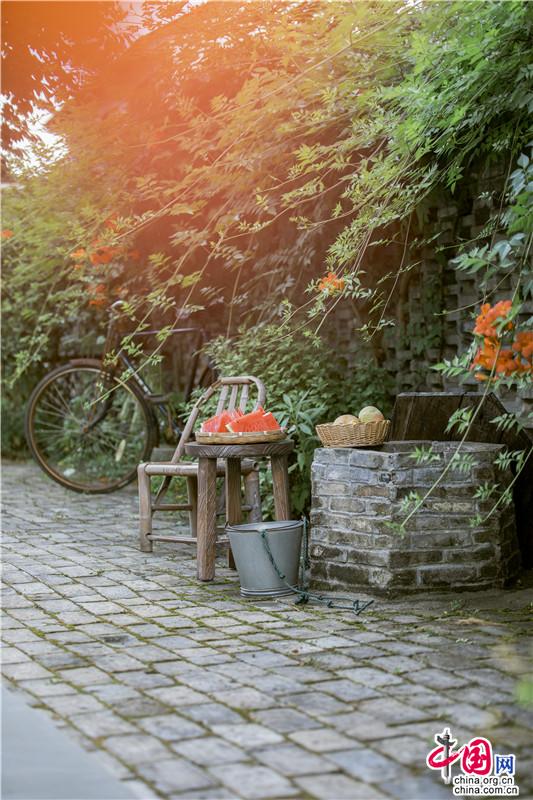 一縷陽(yáng)光從藤蔓間落下,微風(fēng)激醒了夏日的小院、水井、西瓜、竹椅......自然與肌理糅合陶然入夏。香村的一切,無一不村野,無一不夏天。