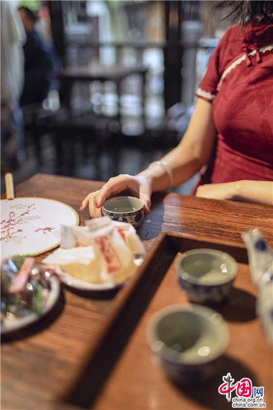 “白茶清歡無別事”,到蜆園橋畔茶香四溢的煮葉去喝一杯茶,在茶香氤氳中,看窗外人來人往,感受悠閑慢時(shí)光。提燈慢行在花巷雨巷,時(shí)光在石板路上浸潤(rùn);坐上手搖船穿行于水巷,江南小調(diào)在槳聲燈影中氤氳;水動(dòng)魚池岸,光影輪轉(zhuǎn)中看魚群跳躍。