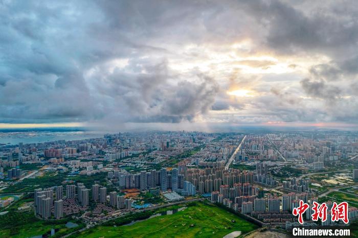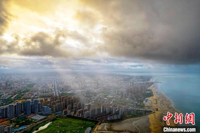 圖為陽(yáng)光穿過云層照耀北海市城區(qū)?!⌒旖B榮 攝
