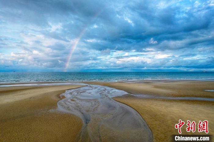 圖為雨后彩虹立于海天之間?!⌒旖B榮 攝