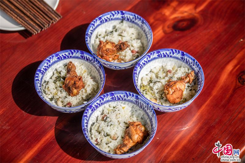 秋風(fēng)一起,人一哆嗦,吃吃喝喝的時候就到了。角落蹲著老樹,廊下窩著一張秋千,藍(lán)天白云底下落落一口大鍋灶,鍋里撲騰著剛碾的新米,風(fēng)里已經(jīng)是秋天的味道了。孩子們囫圇一碗下肚,又添一碗候著了。吃大地的能量,吃的還得是這股熱乎勁兒,太對頭了。