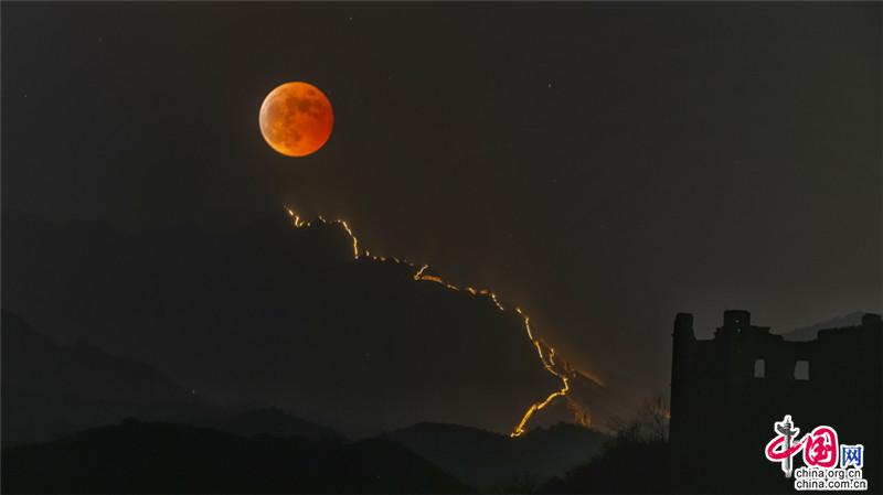 【點(diǎn)睛】11月8日晚,2022年天文奇觀——月全食天象現(xiàn)身。初冬的金山嶺長(zhǎng)城,顏值依舊是巔峰,那一輪紅月亮,月全食(紅月亮)天象,驚艷了天上人間。