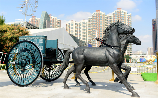——文物活化利用工程。作為全國文物大省,甘肅省文旅廳深入學(xué)習(xí)領(lǐng)會(huì)、認(rèn)真貫徹落實(shí)習(xí)近平總書記關(guān)于“讓文物活起來”的重要論述精神,持續(xù)激活文物資源和文化遺產(chǎn)蘊(yùn)含的創(chuàng)新創(chuàng)造基因,不斷提高展示傳播水平,讓文物說話,讓歷史說話,讓文化說話,已經(jīng)成為全省文旅工作者的生動(dòng)實(shí)踐。正在加快敦煌研究院“典范”“高地”建設(shè),推進(jìn)長(zhǎng)城、長(zhǎng)征、黃河國家文化公園建設(shè)。實(shí)施中華文明探源工程和“考古中國”等重大項(xiàng)目,以甘肅秦文化和西戎文化考古成果為原型復(fù)制“戰(zhàn)國豪車”,賦能文旅產(chǎn)業(yè)。由甘肅省文旅廳組織制作的戰(zhàn)國戎人車輿,嚴(yán)格依照馬家塬戰(zhàn)國戎人貴族墓地出土古車式樣,采用銅雕髹漆等技藝,再現(xiàn)了戰(zhàn)國戎人車輿風(fēng)采,體現(xiàn)了甘肅文旅系統(tǒng)融入“一帶一路”倡議、秉承絲路精神、復(fù)興絲綢之路、構(gòu)建人類命運(yùn)共同體的文化自覺。戰(zhàn)國戎人車馬以文創(chuàng)的形式與甘肅彩車一道復(fù)原展出,即刻走進(jìn)大眾視野,成為甘肅文旅和省會(huì)蘭州的又一張靚麗新名片、城市新地標(biāo)。
