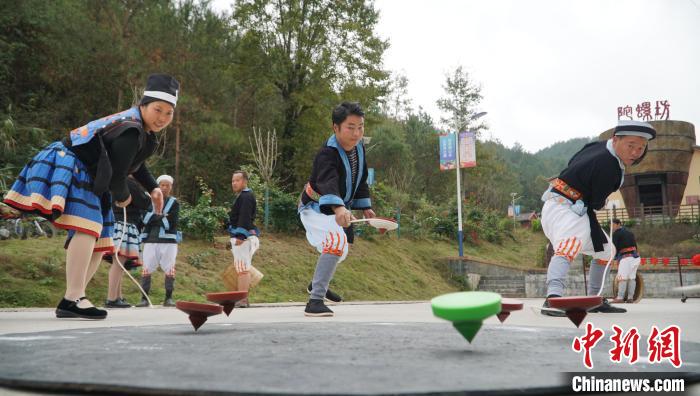 圖為白褲瑤居民正在玩轉(zhuǎn)陀螺。韋國(guó)政 攝