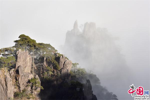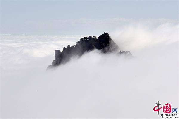 11月23日下午,安徽黃山風(fēng)景區(qū)雨后放晴,山巒之中,云海彌漫,縹緲無形,奇松、怪石和群峰在的云海間時隱時現(xiàn),亦夢亦幻。
