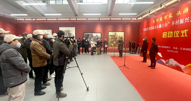 12月17日上午,“甘肅藝術(shù)名家百人隴上行”鄉(xiāng)村振興藝術(shù)創(chuàng)作工程采風(fēng)活動(dòng)在甘肅畫(huà)院正式啟動(dòng),來(lái)自全省各地的藝術(shù)家從蘭州黃河之濱,奔赴甘南、隴南兩地重點(diǎn)旅游示范村開(kāi)展創(chuàng)作采風(fēng)活動(dòng)。省委宣傳部副部長(zhǎng)、省文旅廳黨組書(shū)記何效祖出席啟動(dòng)儀式并講話。省文化和旅游廳黨組成員、副廳長(zhǎng)萬(wàn)學(xué)科主持啟動(dòng)儀式,甘肅畫(huà)院院長(zhǎng)王萬(wàn)成,甘肅文旅集團(tuán)黨委副書(shū)記、工會(huì)主席王寧等出席啟動(dòng)儀式。