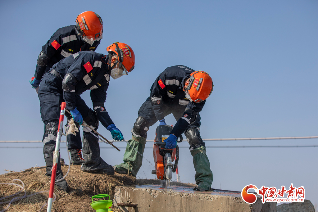 培訓隊員正在開展狹小空間破拆訓練