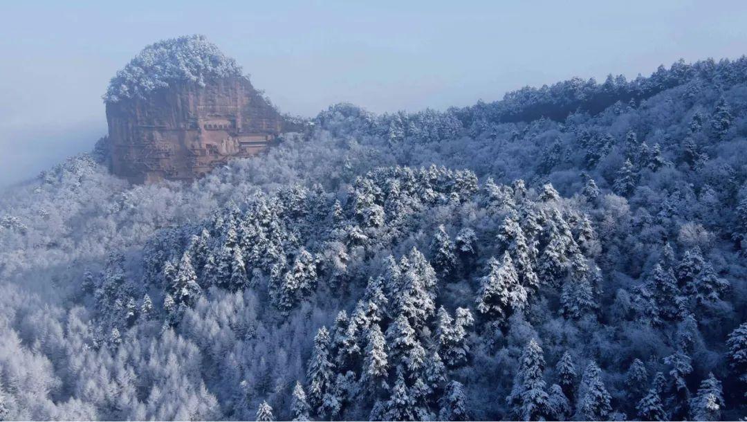 原標(biāo)題:春雪染麥積,觸處似花開(kāi)