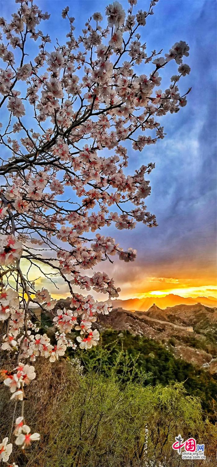 資料圖:當(dāng)長(zhǎng)城遇上杏花。 張愛(ài)東 攝 圖片和作品內(nèi)容無(wú)關(guān)
