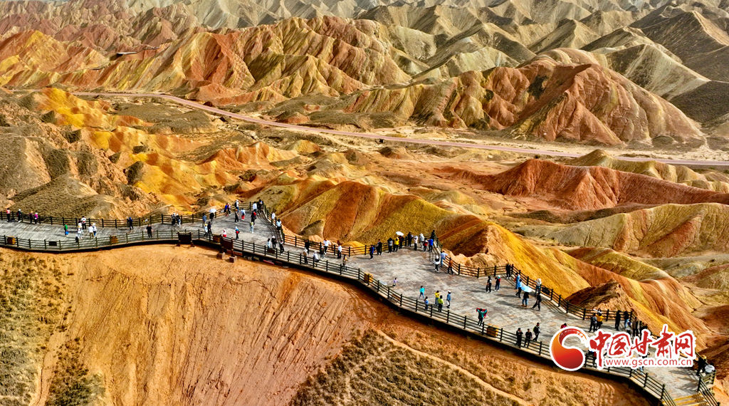 5月1日,甘肅張掖七彩丹霞旅游景區(qū)內(nèi)游人如織,來自全國(guó)各地的18000多名游客慕名前來,欣賞獨(dú)特的丹霞地貌,領(lǐng)略大自然雄奇壯觀的景色。