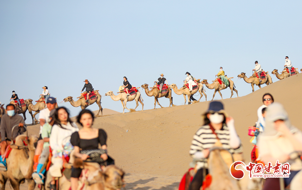 眼下正值甘肅省敦煌市旅游旺季,鳴沙山月牙泉景區(qū)持續(xù)吸引游客前來參觀游覽,這些駱駝每天更忙碌也更規(guī)律——早晨六點多“上班”,輪流休息,傍晚七點多“下班”。蜿蜒的駝隊在駝道上馱著游客在沙漠中漫步,成為鳴沙山月牙泉景區(qū)一道優(yōu)美的風(fēng)景線。