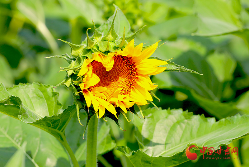 7月20日,位于文縣尚德鎮(zhèn)尹家壩村的矮化向日葵進入盛花期,金燦燦的花朵競相綻放,匯成金黃色海洋,引來成群的蝴蝶嬉戲、蜜蜂采蜜,生態(tài)宜居的美麗村莊鑲嵌其間,慕名而來的游客愜意賞花拍照、絡(luò)繹不絕。