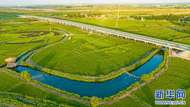 8月20日,在甘肅省張掖市甘州區(qū)烏江鎮(zhèn)新河田園綜合體藝術(shù)稻田景觀區(qū),以“絲路水鄉(xiāng)·稻畫田園”為主題組成的稻田畫惟妙惟肖、栩栩如生,呈現(xiàn)出祁連山下別樣的田園魅力。新華網(wǎng)發(fā)(成林 攝)