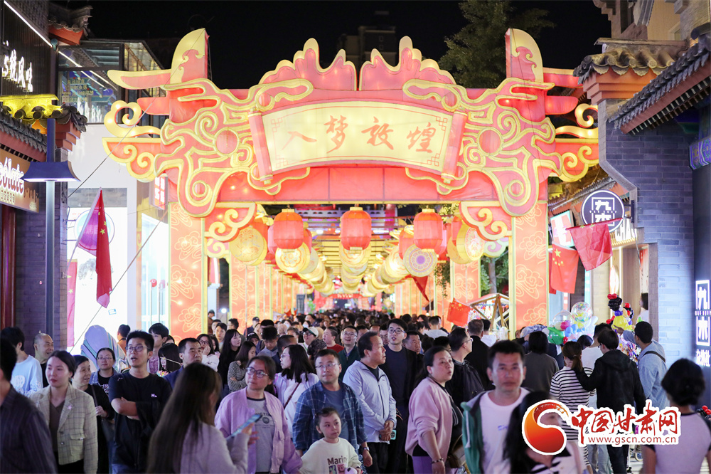 10月1日,國慶節(jié)期間,位于蘭州市七里河區(qū)的蘭州老街燈光璀璨,市民和游客紛紛前來賞景、游玩、品美食,用多種方式慶國慶、度假期。