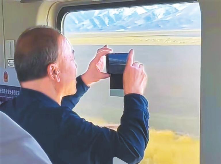 視頻中,一男子舉著手機(jī),透過車窗面對(duì)著藍(lán)天、雪山、草原情不自禁地抒情:祁連山下,各族兒女兩千多年來在華夏的文明史上書寫了鞏固民族大業(yè)、實(shí)現(xiàn)祖國統(tǒng)一、民族繁榮的恢弘歷史。朋友們,來張掖!感受兩千年的絲綢之路,感悟現(xiàn)代的動(dòng)車奔跑在祖國的大地上,讓中華在實(shí)現(xiàn)偉大復(fù)興的磅礴征程中恢弘勃發(fā)的新長征、新歷史。