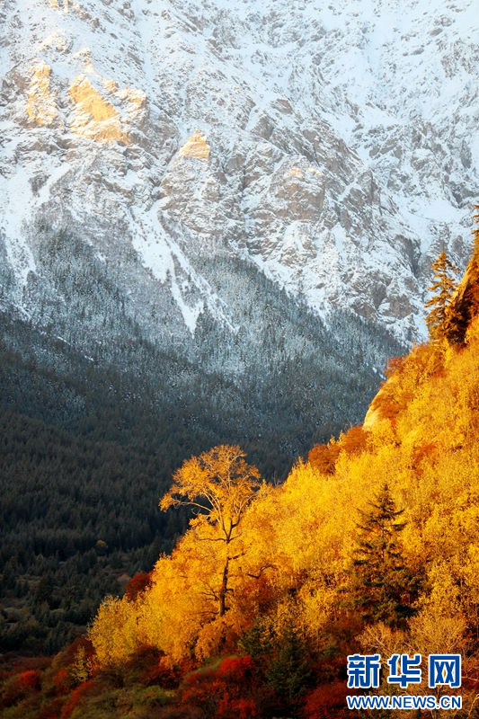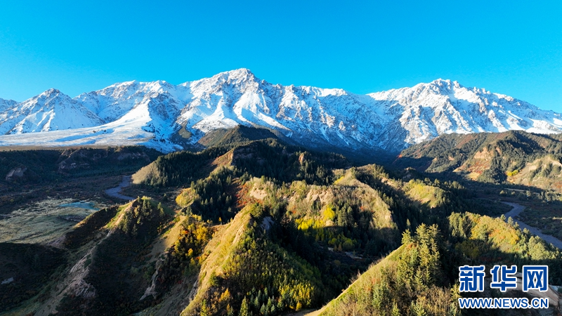深秋時節(jié),在甘肅省張掖市肅南裕固族自治縣境內(nèi)的祁連山國家公園,山頂白雪皚皚,山間云霧繚繞,山林色彩斑斕,展現(xiàn)出天地之大美。(圖片:成林 視頻:劉欣瑜 成林)