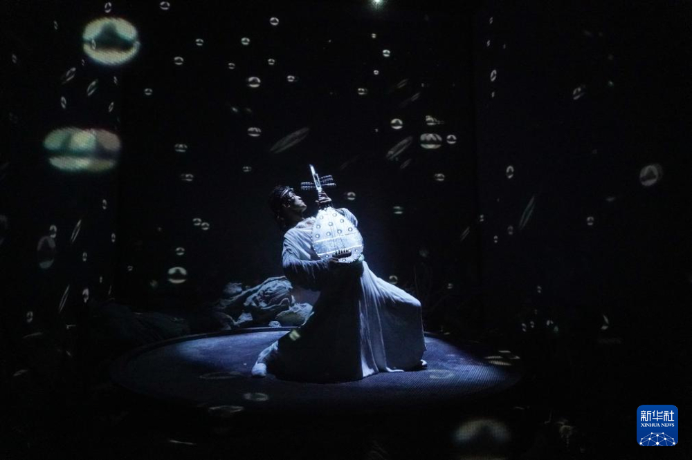 1月21日,在甘肅省敦煌市,演員在大型洞窟式沉浸體驗(yàn)劇《樂動敦煌》中表演。新華社記者 馬希平 攝