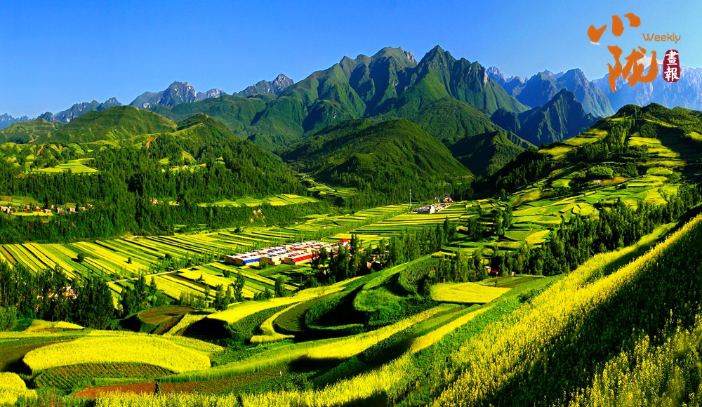 青山環(huán)繞,大南岔河潺潺流過,藍(lán)天白云下,村莊、山巒、樹木相映成趣……此時的和政大地如童話般浪漫唯美,像一幅美麗的田園詩畫,一路芳華,令人陶醉。