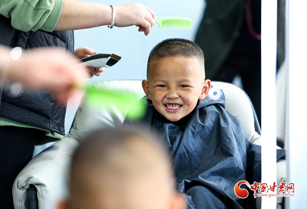 3月11日,在臨夏市一理發(fā)店內(nèi),理發(fā)師正在為一名小朋友“剃龍頭”。當(dāng)日,是農(nóng)歷二月初二,許多家長(zhǎng)帶著孩子到理發(fā)店理發(fā),希望孩子能健康成長(zhǎng),日后出人頭地,為新的一年討個(gè)好彩頭。