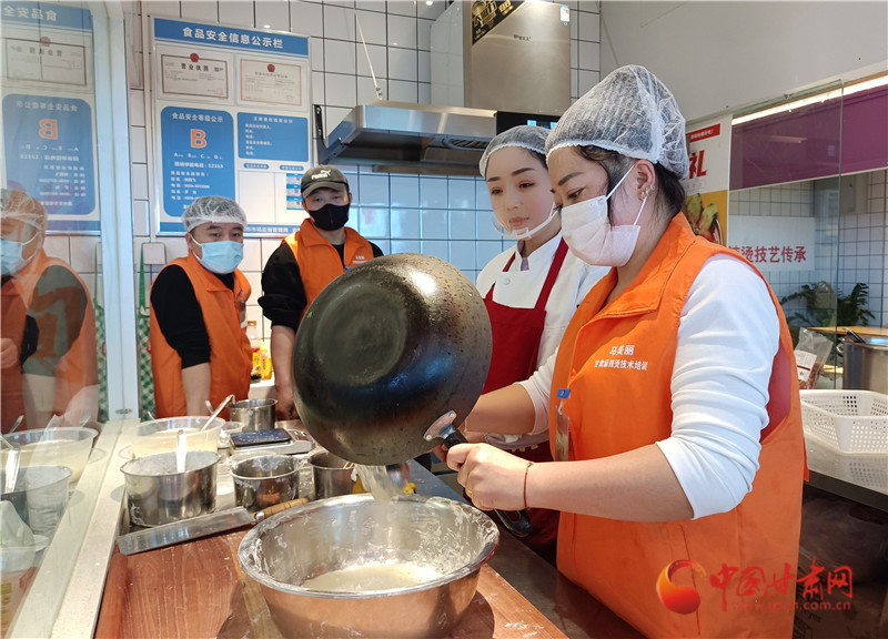 潑辣椒,制作手搟粉,在老師的帶領(lǐng)下,王學(xué)佳一個步驟一個步驟地學(xué)習(xí)天水麻辣燙的要領(lǐng),希望能將正宗的天水麻辣燙帶回東北。