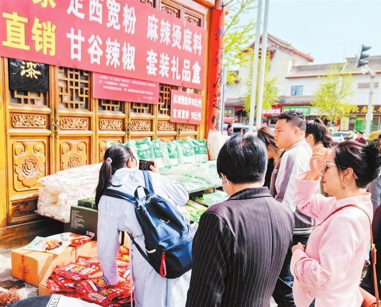 游客在代銷點(diǎn)購(gòu)買麻辣燙底料和粉條。新甘肅·甘肅日?qǐng)?bào)記者 顧麗娟