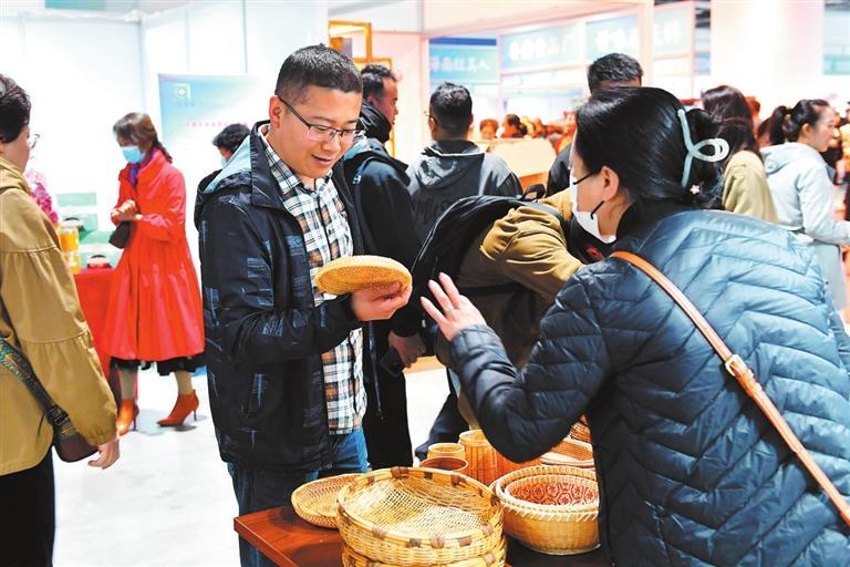 游客在展銷會(huì)上選購(gòu)文創(chuàng)產(chǎn)品。新甘肅·甘肅日?qǐng)?bào)記者 高檣