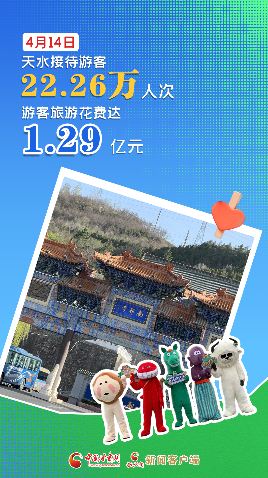 海報(bào)|4月14日,天水市共接待游客22.26萬人次,游客旅游花費(fèi)達(dá)1.29億元