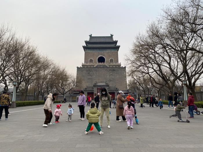 圖為市民在北京鐘鼓樓廣場游玩。中新社記者 陳杭 攝