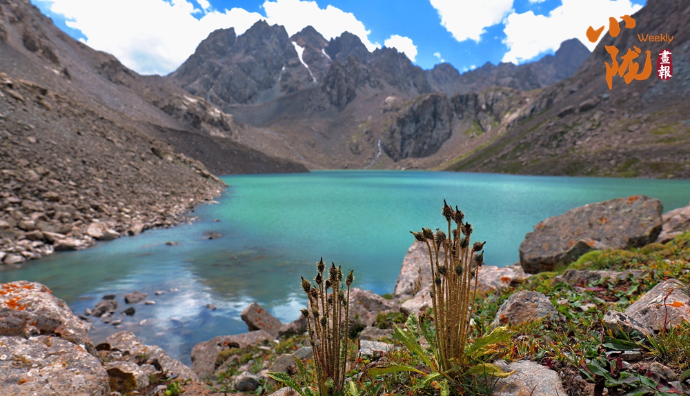春天,冰川消融,天池池水碧綠,深不可測(cè),宛如仙境。