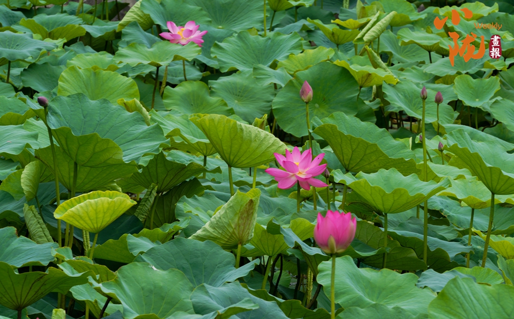 大片的荷葉層層疊疊,一支支荷花婷婷水中,在蓮葉的映襯下展現(xiàn)出更加?jì)擅膭?dòng)人的風(fēng)韻,為炎炎夏日增添了幾分詩(shī)情畫意,讓前來(lái)觀賞的群眾領(lǐng)略了荷葉田田的生態(tài)美景。