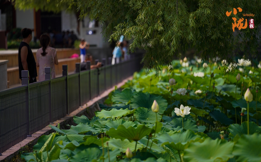 來(lái)到裴公湖放眼望去,在層層疊疊的荷葉間,盛開的荷花隨風(fēng)輕擺、搖曳生姿,荷葉層層疊疊,荷香飄蕩,不少花蕾悄立枝頭,市民和游客漫步于荷塘步道,在清風(fēng)荷香間感受夏日韻味。