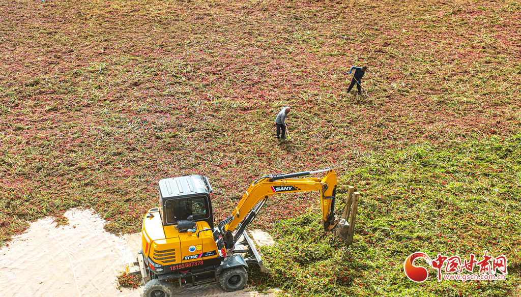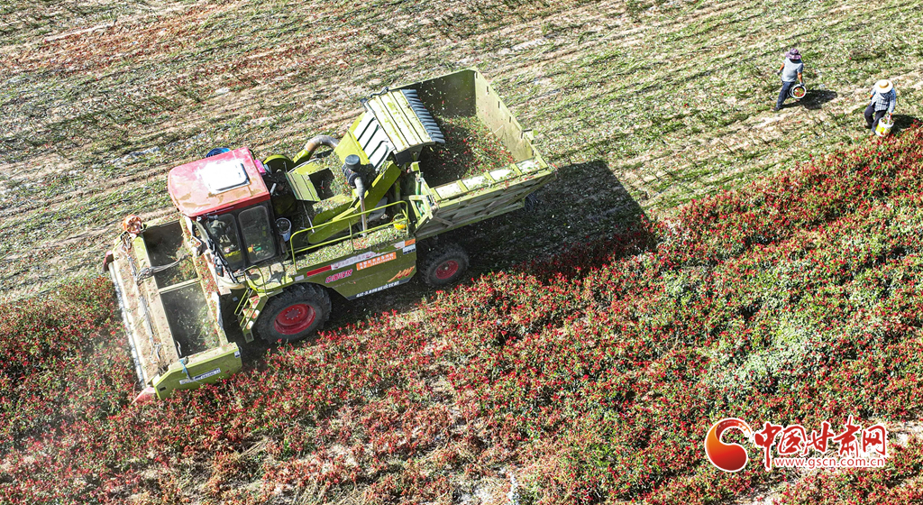 近日,臨澤縣平川鎮(zhèn)種植的3900多畝朝天椒進(jìn)入采收期,朝天椒采收機(jī)馬達(dá)轟鳴,在田地里來(lái)回穿梭,快速采收。種植農(nóng)戶們把采收的朝天椒運(yùn)往晾曬場(chǎng),經(jīng)過分揀、晾曬、包裝后發(fā)往山東、河南、安徽、重慶、貴州等地訂單客戶手中。