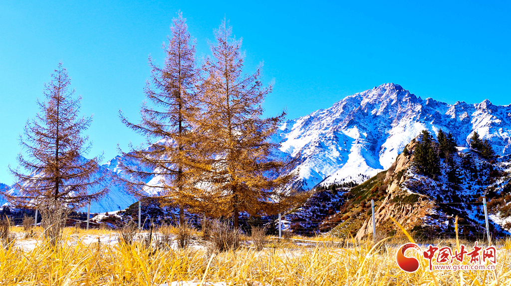10月22日清晨,雪后初霽,在祁連山公園甘肅省張掖市肅南裕固族自治縣馬蹄藏族鄉(xiāng)段,陽(yáng)光灑滿(mǎn)大地,在白雪的映襯下,五彩斑斕的樹(shù)葉更加動(dòng)人,呈現(xiàn)出一片迷人的畫(huà)卷。