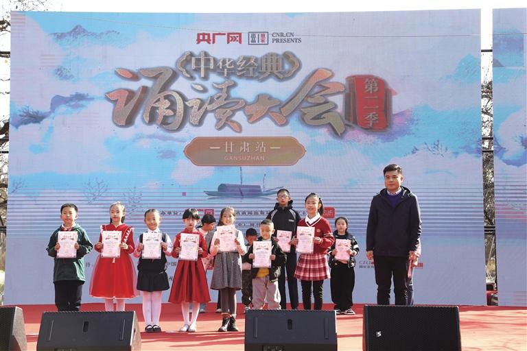 活動在鏗鏘有力的太平鼓聲中拉開帷幕,《滿江紅》《明月千里寄相思》《邊塞詩串燒》等詩歌朗誦依次上演,讓現(xiàn)場的觀眾沉浸在悠悠古韻中。歌曲《撒是蘭州》《不唱花兒心不甘》《推開甘肅的門》等為觀眾送上視聽盛宴,經典名篇《黃河頌》的朗誦更是將現(xiàn)場的氣氛推向了高潮。本次“中華經典誦讀大會”(第二季)甘肅站活動共設置萌新組、小學組、中學組、大學組、樂齡組、社會組6個組別,截至報名通道關閉,甘肅站報名人數(shù)達15714人,位列34個?。▍^(qū)、市)第三位?,F(xiàn)場還為獲獎選手舉行了頒獎儀式。