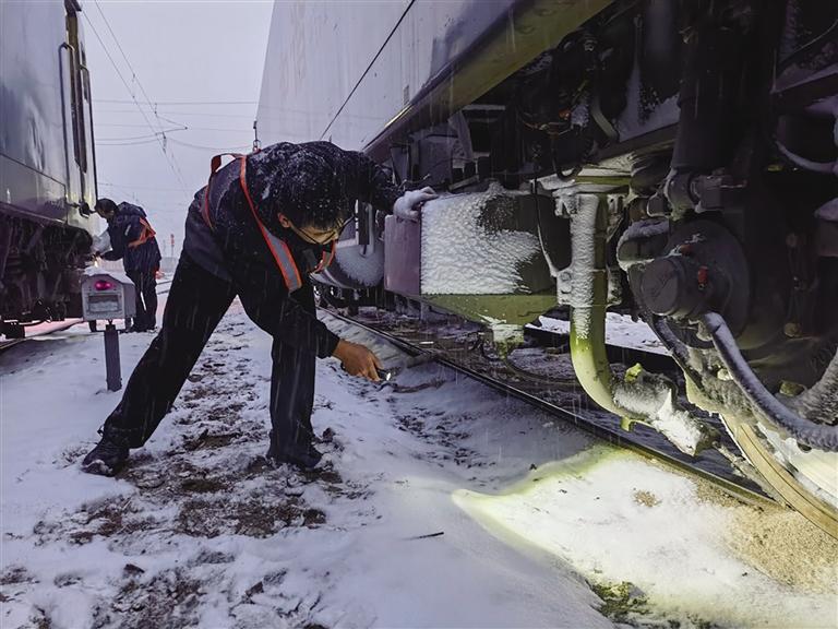 受今年入冬以來最強寒潮、雨雪天氣影響,11月23日20時開始,中國鐵路蘭州局集團有限公司蘭州西機務(wù)段調(diào)車車間擔當管內(nèi)的武威南、打柴溝等地區(qū)氣溫接近零下15℃,蘭新線蘭州北至武威南、蘭青線部分線路已普降中到大雪,調(diào)車車間干部職工以雪為令,精心組織、主動應(yīng)對,采取有力措施最大限度降低不良天氣給行車安全帶來的影響,全力保證疆煤外運人員供應(yīng),確保列車安全暢通。