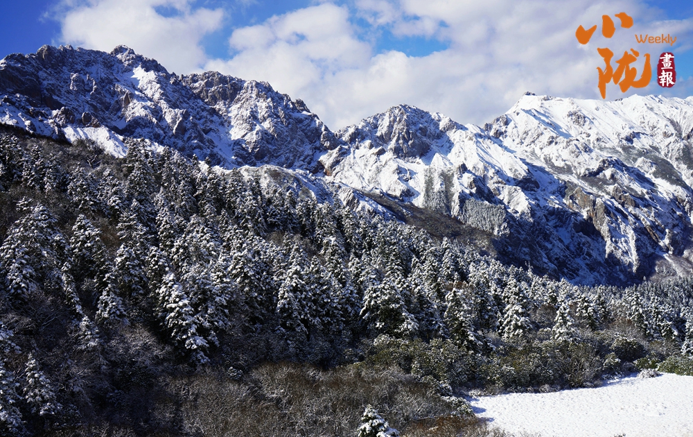 群山銀裝素裹,在皚皚白雪的映襯下,峰谷相連,形成一道獨特的風景。