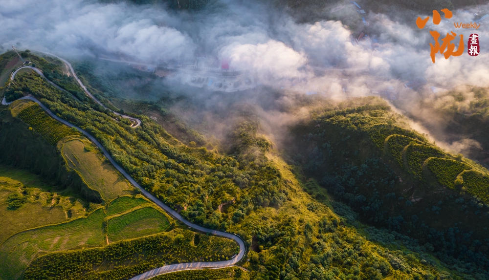 空中俯瞰,裊裊升騰的云霧、郁郁蔥蔥的山嶺、蜿蜒曲折的山路,不禁讓人感嘆:華池處處皆風(fēng)景。