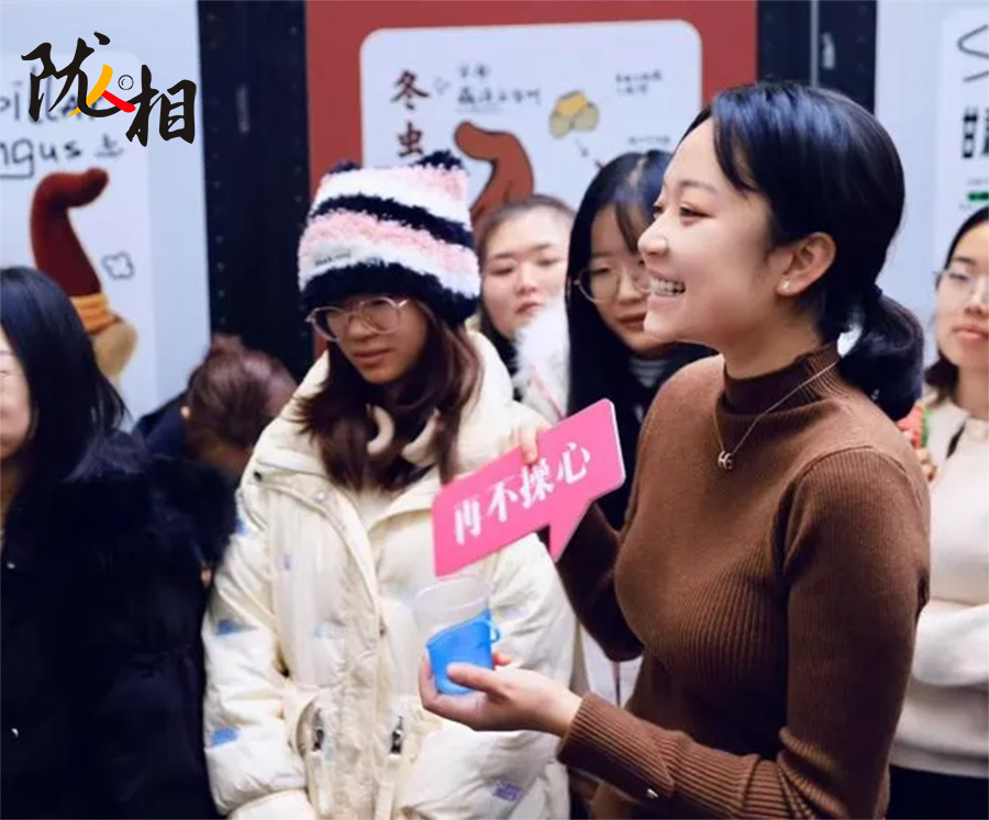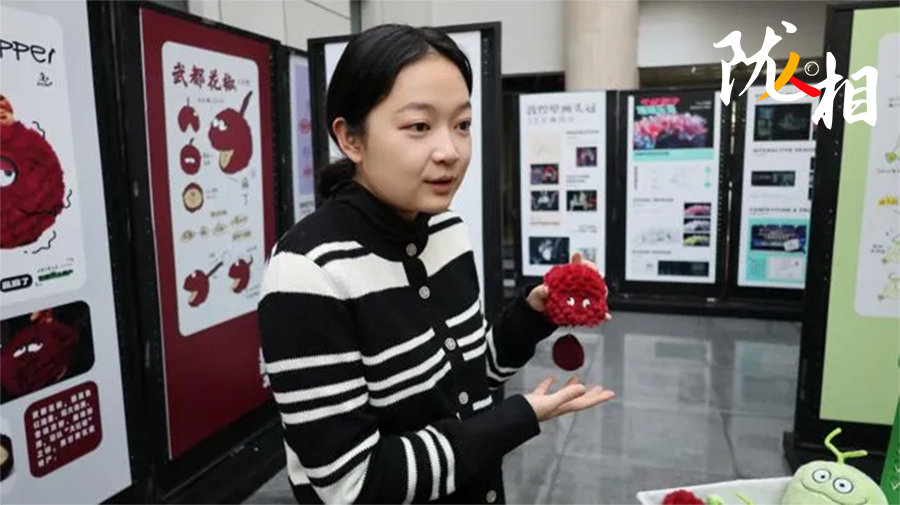 她拿起一只文創(chuàng)玩偶,輕輕拉起玩偶頂部蜷縮的細(xì)柄,這只紫紅色、毛茸茸的花椒玩偶立刻“嗡嗡”震動起來。花椒味覺上的麻就這樣傳遞到手上,精妙的構(gòu)思,令大家會心一笑。