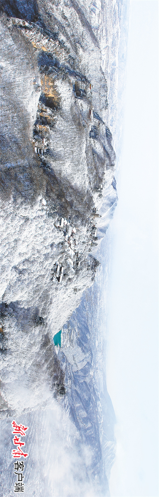 連綿起伏的山巒被皚皚白雪覆蓋,整個山區(qū)變得寧靜祥和,宛如走入了如詩如畫的雪國,天地浩然一色。