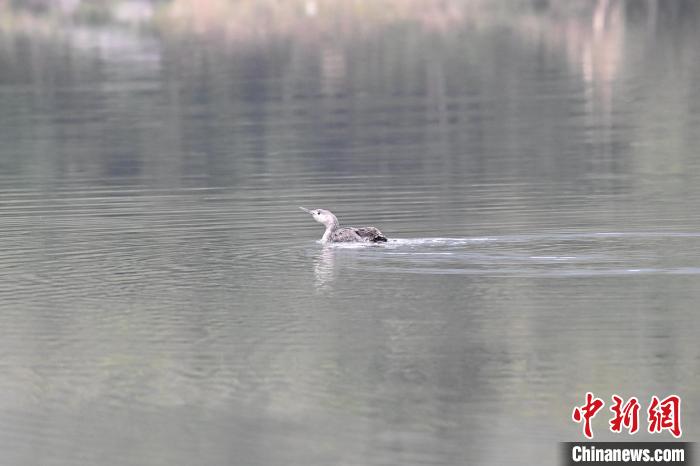 湖南首次發(fā)現(xiàn)海洋性鳥類紅喉潛鳥。 唐甲 攝