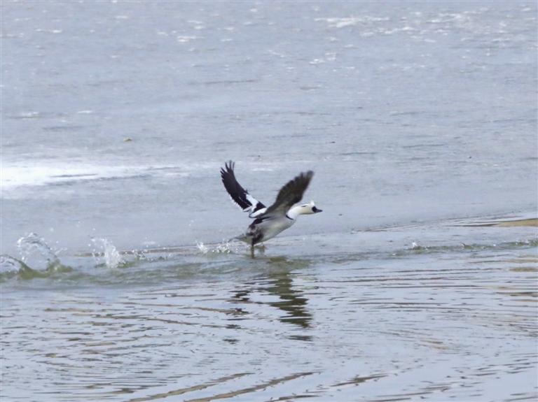 斑頭秋沙鴨是我國(guó)“三有”保護(hù)動(dòng)物,它還有一個(gè)萌萌的名字,叫“熊貓鴨”。瞧,它那黑白相間的羽毛,眼睛周圍和熊貓一樣,像戴了一副墨鏡,時(shí)而潛入水下追捕魚兒,時(shí)而與同伴嬉戲,時(shí)而振翅飛翔,可愛活潑的模樣在水面上格外顯眼。