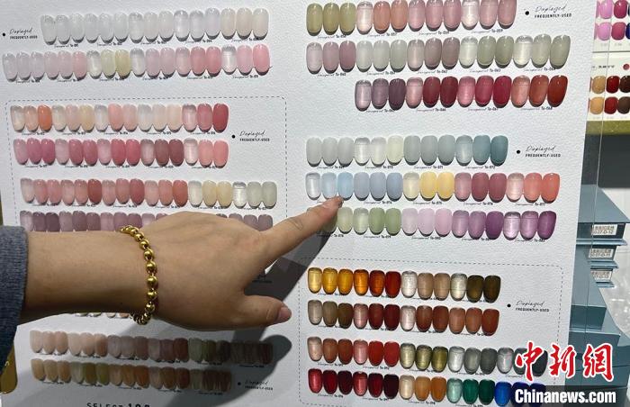 2月17日,在山東煙臺(tái)一家美甲店,顧客在選擇顏色。王嬌妮 攝