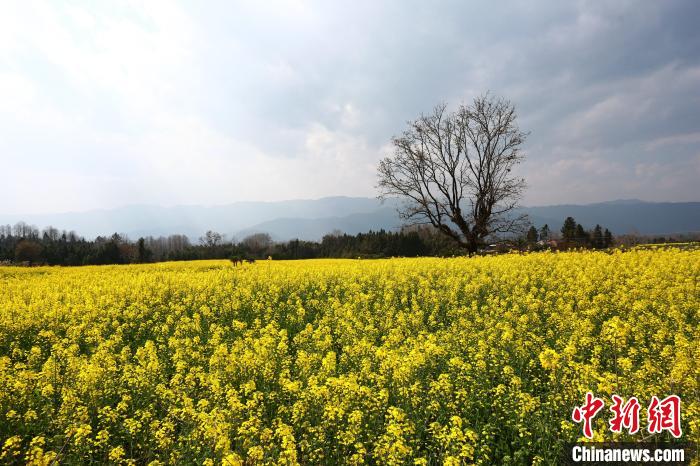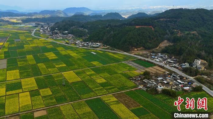 近日,云南省騰沖市界頭鎮(zhèn)成片的油菜花盛開,吸引不少游客前來觀光。金黃的油菜花海與遠(yuǎn)處白墻黛瓦的村落相映成趣,共同繪就一幅寫意的水墨畫。圖為大片油菜花盛開。趙輝 攝